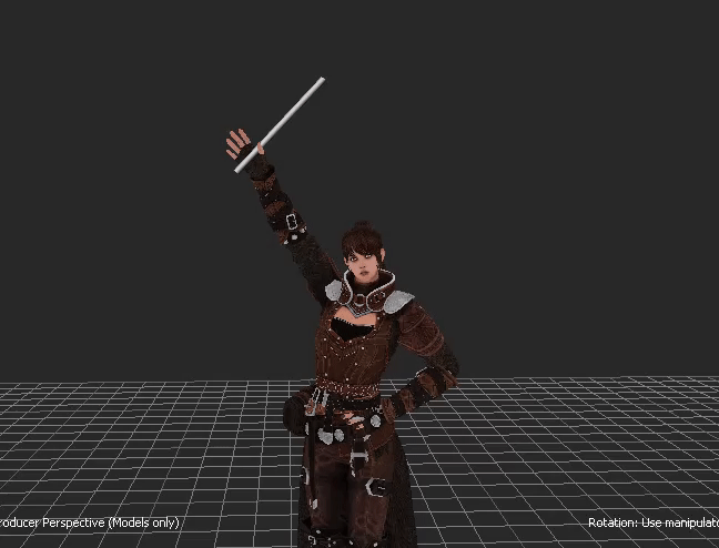 - 手に持たせる小物の位置合わせは、モーションの中で手が見えるフレームを選んで調整することで自然な追従感が得られます。