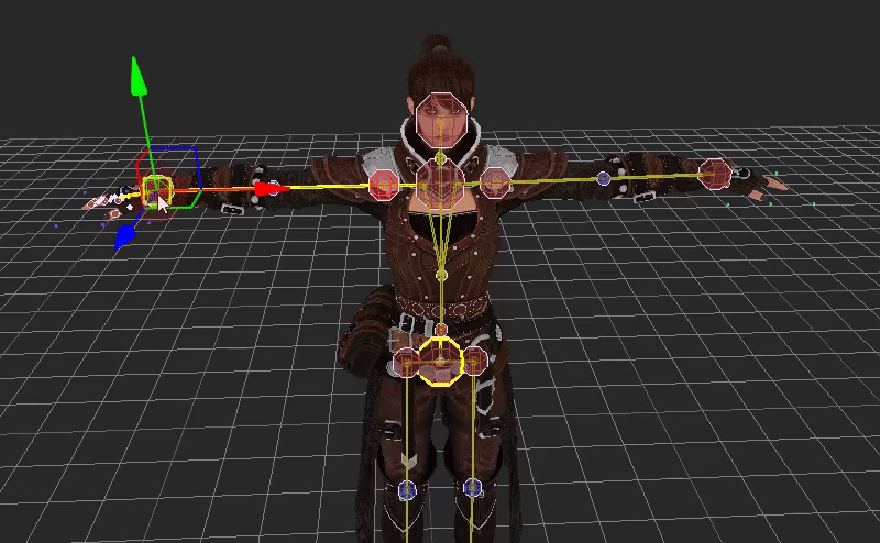 - コントロールリグは、キャラクタ化されたボーンに対するハンドル的な補助オブジェクトで、IK やハンドル操作で動かせるため、モデル修正が容易になります。