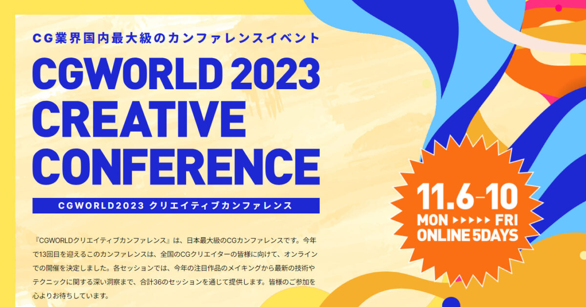 この度、日本最大級のCGカンファレンス「CGWORLD 2023 CREATIVE CONFERENCE」に弊社CGIアーティストが登壇することとなりました!